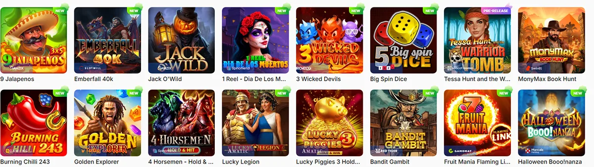 K dispozícii máte automaty od Pragmatic Play, Push Gaming, Nolimit City a Quickspin. Nájdete tu aj jackpotové hry s progresívnymi výhrami.